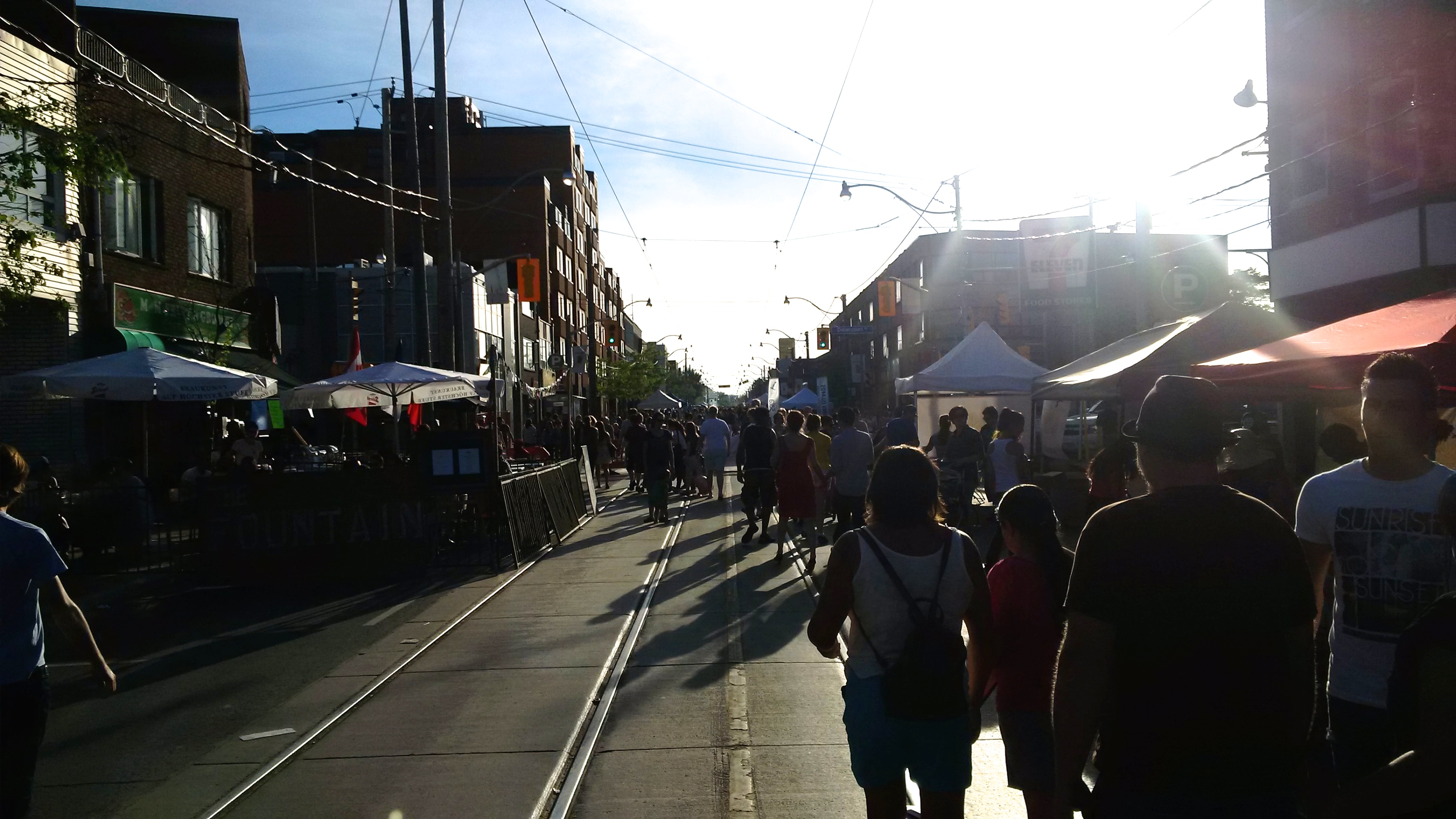 There are far too many choices on the Saturday/Sunday shuffle in the city. This is a trigger for my extreme case of FOMO. (That fear of missing out thing… and my continued case of trying something new. Crossfit started this past Sunday!) This past weekend some friends and I chose the west end, specifically the Dundas West Fest. Street festivals are kinda sorta maybe my favourite summer thing to do in the city. You really don’t feel like you’re in the city; visiting vendors, the smell of BBQ that takes you back to swimming in your Grandparents backyard as a kid and a few cocktails with friends at a fold up table curb side, people watching to end the day. I like it that way. While sipping on a dark and stormy, visuals of acceptance stood out in the little fenced off patio where we sat and it was so refreshing. People expressing themselves through laughter and clothing layers and love with no labels. Being able to be completely yourself and accepted is one of the biggest highs. Being loved for being perfectly imperfect. In a field where you’re ‘judged’ for your looks and presence and what comes out of your mouth daily (which I chose to be a part of), I crave what I absorbed on Dundas West some days. This morning I read this saying on instagram and it’s bang on –> Artists are people driven by the tension between the desire to communicate and the desire to hide. SO TRUE. It was nice to hide this past weekend. And when we all had to move inside the bar at sundown, everyone picked up their own table and chairs and helped carry them inside to put away and that was super cool to me. It’s just a little thing but they all add up. -k